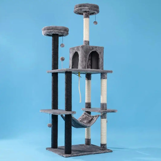 Ylellinen kissapuu riippumatolla ja raaputuspuulla